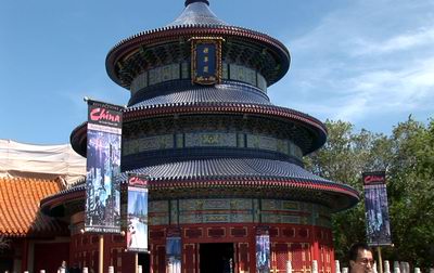 The Chinese pavilion is dominated with Disney's copy of the Beijing Temple of Heaven.