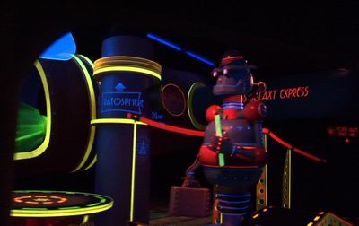 speed. This ride sets you in a space ship flying around the Galaxy.