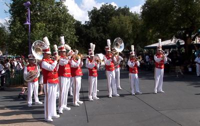 Street entertainment at it's best as the Disney Brass Band march into Fantasyland
