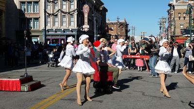 The World famous Macy's Christmas Parade comes to Universal Studios. This is a not to be missed extravaganza of dancing and lights and of course fittingly climaxed by the appearance of the big man himself (and this really is the big man).