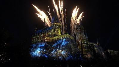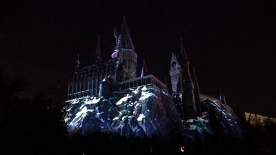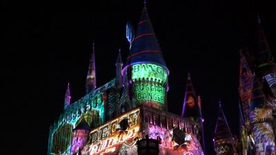 Projected onto Hogwarts castle is Universals nighttime spectacular. Limited fireworks but the laser show is something else.