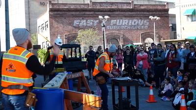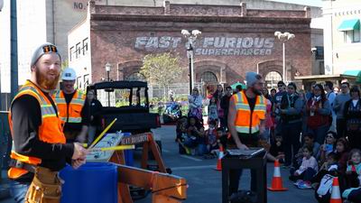 It must be an American Workers thing, because in the UK, workers wouldn't dream of breaking into an impromptu gig at break time. It's a cuppa for them and a well earned sit down .
