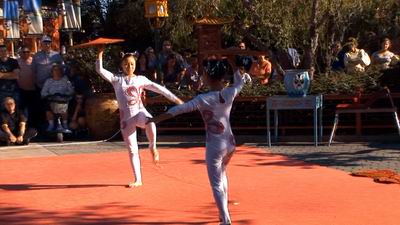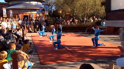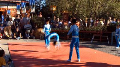 Chinese Acrobats (EPCOT - China Pavilion) doing what Acrobats do.