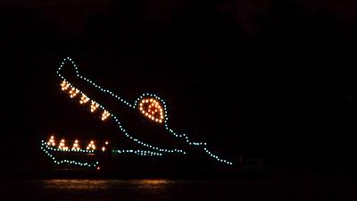 The Seven Seas Lagoon Light Show (Magic Kingdom) consists of floats passing by the Magic Kingdom.