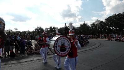 As a precursor to Disney's Festival of Fantasy parade we a treated to a march past of the Main Street Philharmonic Orchestra playing a suitable Disney tune en route.