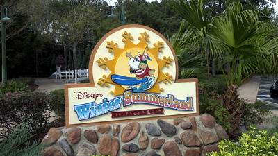 On the outskirts of Disney's other water park, Blizzard Beach, you can find the Wintersummerland miniature golf complex, consisting of a Winter golf course and a Summer golf course. Here we choose the Winter golf course.